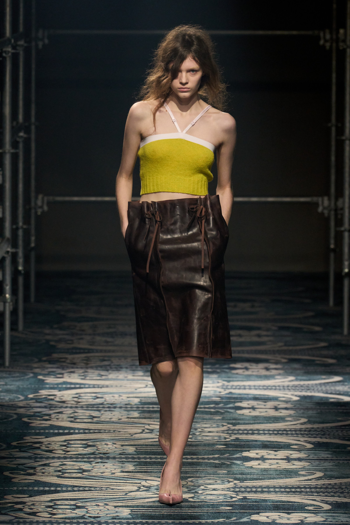 Дизайнери пропонують різні інтерпретації тренду. У Miu Miu це варіації зі шкіри, сітки чи клітинки, нерідко доповнені гольфами для грайливого акценту. Prada ж робить ставку на об`ємні силуети у поєднанні з лаконічними топами, а Saint Laurent обирає чуттєвий крій олівця в яскраво-жовтому чи темно-зеленому мереживі.
