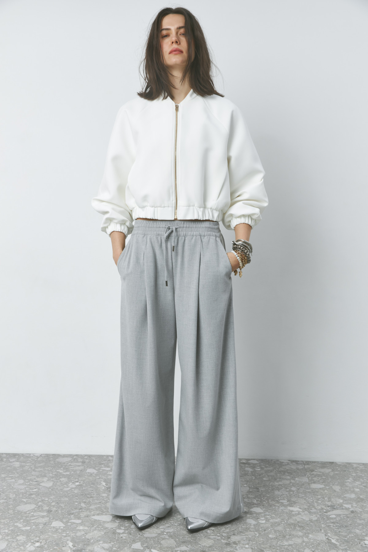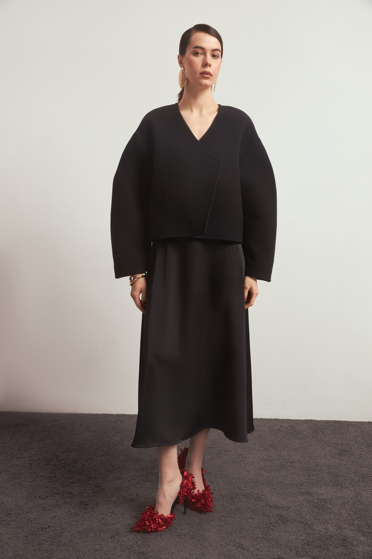 Колекція DUALNIST поєднує контрасти фактур і стилів. Сатин стає основою як для жіночних довгих суконь, так і для костюмів у піжамному стилі з кімоно. Легкі брюки комбінуються з худі та бомберами, створюючи комфортні образи з акцентом на жіночність. Шорти в поєднані з максікардиганами чи вкороченими об’ємними бомберами створюють вільні силуети, що підкреслюють характер.