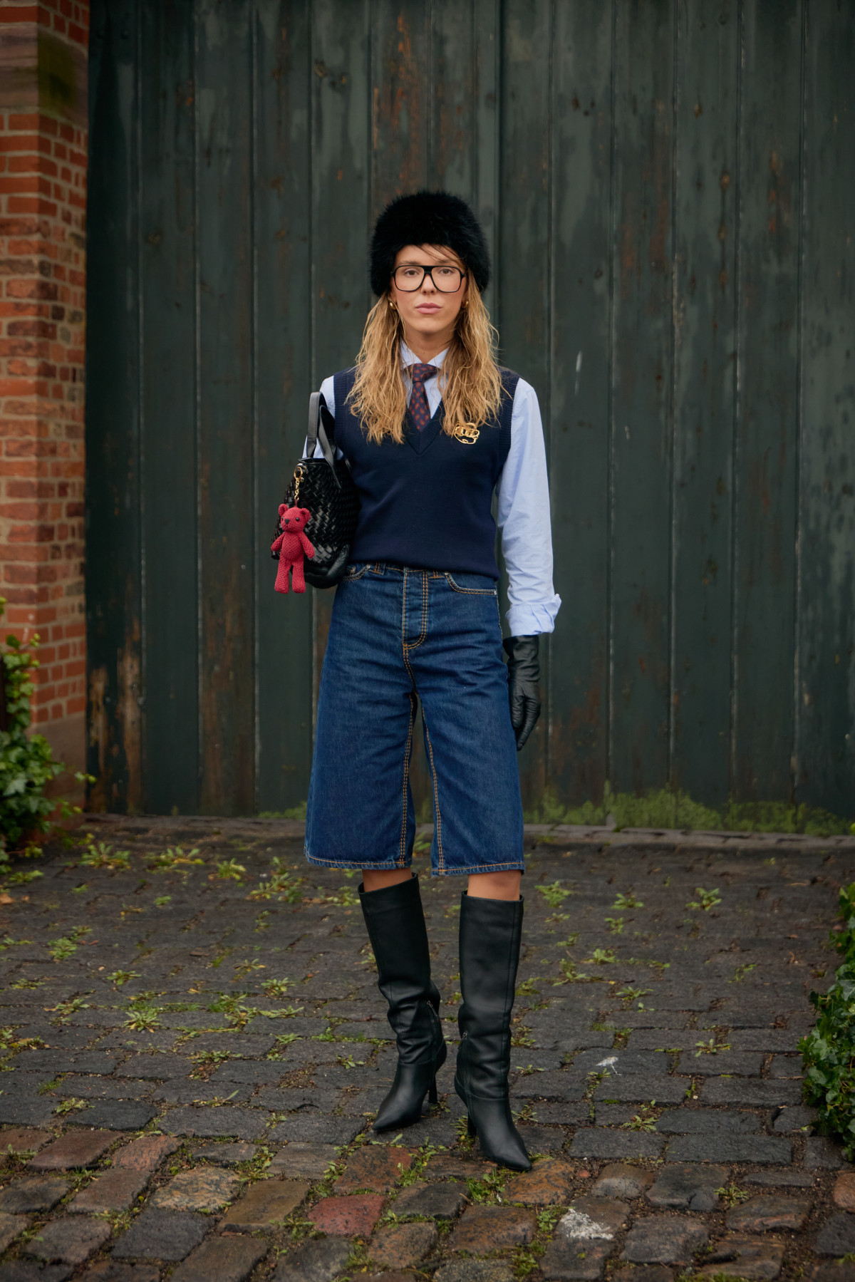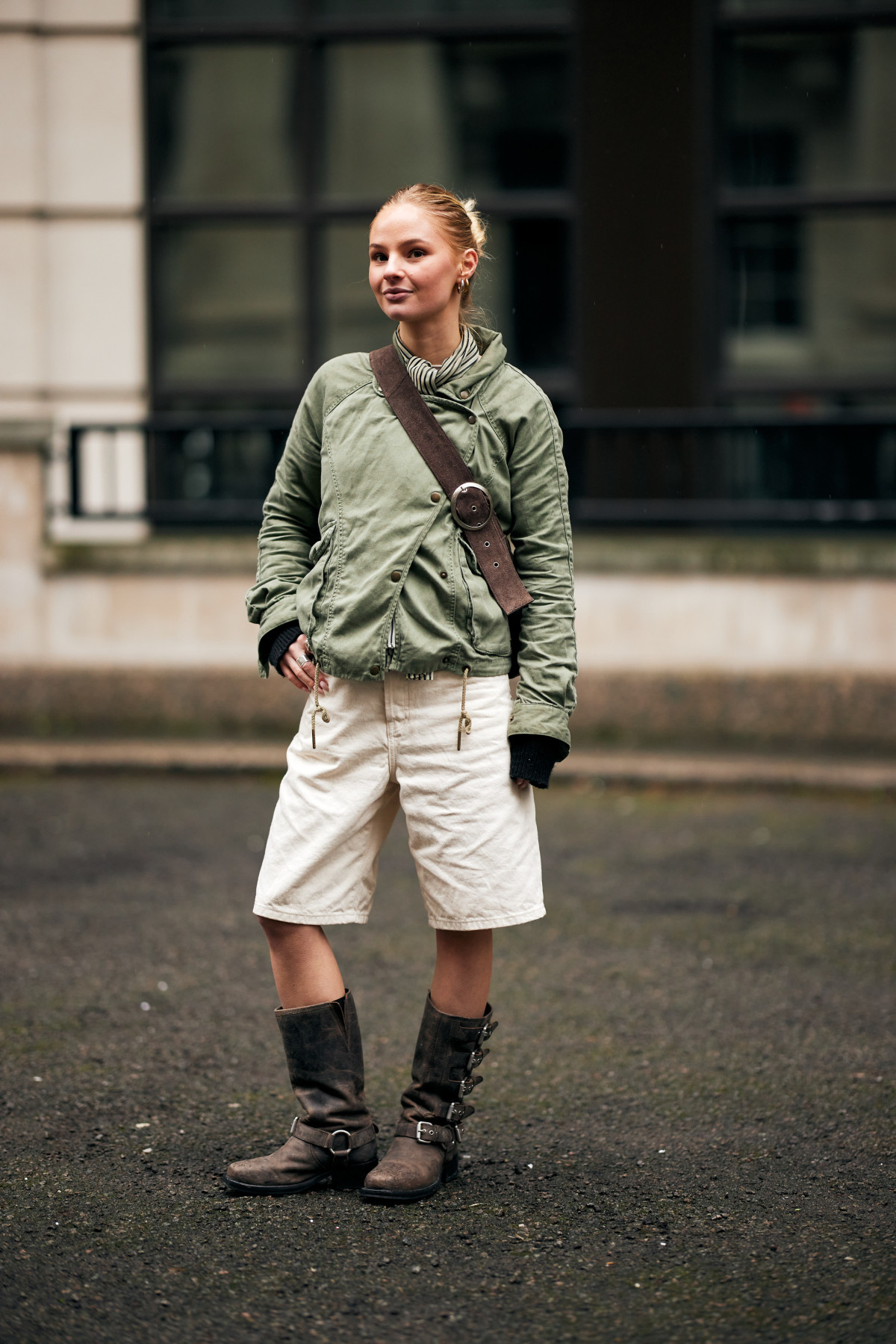 Модниці також не забарилися із власними поєднаннями з цим предметом гардероба. Найпопулярнішими моделями дівчата визначили шорти з деніму, замші та костюмної тканини, які з легкістю комбінуватимуться з будь-якими іншими елементами верху та різноманітним взуттям. Зокрема, ми відмітили комбінації з елегантними блузами, легкими оверсайз-сорочками та тонкими джемперами чи трикотажними жилетами. Одним із найпомітніших прийомів, звісно ж, стала багатошаровість: поверх сорочок streetstyle-зірки додавали вкорочені тренчі або жакети з чоловічого плеча, а у прохолодніші дні — робочі куртки, пальта чи об’ємні в’язані кардигани.